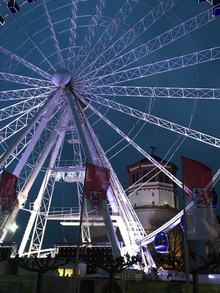Bild: Stimmungsvolles Bild unseres Mitgliedes Dr. Karl-Hans Möller vom Burgplatz in Düsseldorf. Blick durch das Riesenrad zum Düsseldorfer Schlossturm.