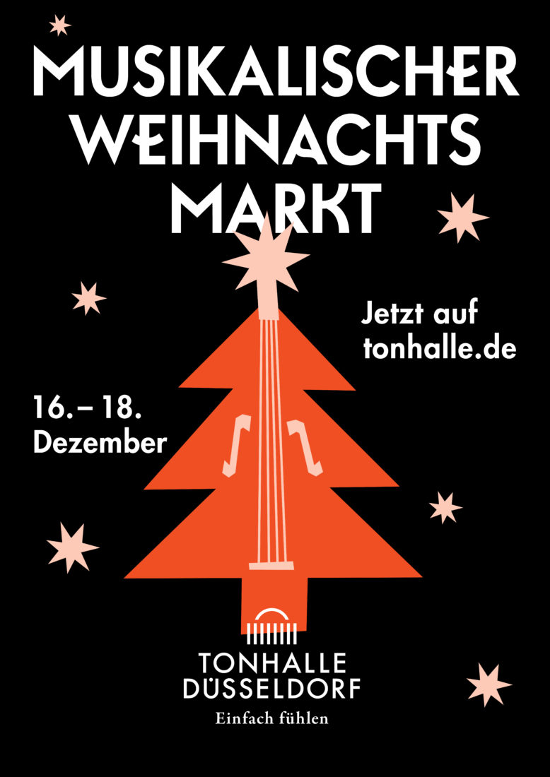 Konzerthäuser und Clubs sind geschlossen, Veranstaltungen abgesagt, es gibt keine Auftrittsmöglichkeiten – freiberufliche Musiker und Soloselbstständige hat die Corona-Krise besonders schwer getroffen. Um diese für uns alle so wichtige Berufsgruppe zu unterstützen, hat die Tonhalle Düsseldorf ein besonderes Format entwickelt: Am 16., 17. und 18. Dezember wird das Konzerthaus Schauplatz eines „Musikalischen Weihnachtsmarkts“, der per Livestream übertragen wird. An den drei Tagen finden Konzerte von zwölf verschiedenen Ensembles und Solokünstlern aus der freien Szene statt. Wie auf einem „echten“ Weihnachtsmarkt lädt die Tonhalle zu einem vorweihnachtlichen Bummel ein, nur dass die einzelnen Stationen nicht Glühwein, gebrannte Mandeln oder Kunsthandwerk verheißen, sondern Musik made in Düsseldorf!